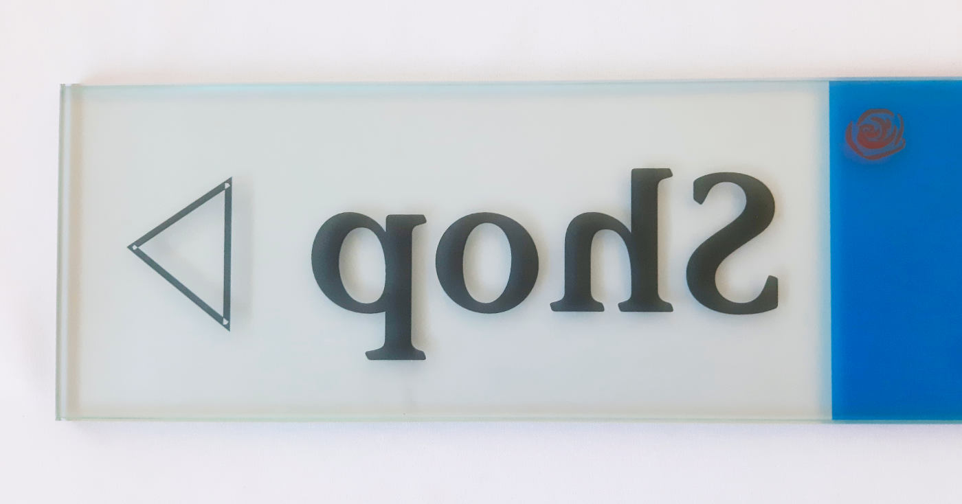 Die Beschriftung mit Hochleistungsfolie verleiht dem Glasschild eine edle Milchglas-Anmutung: