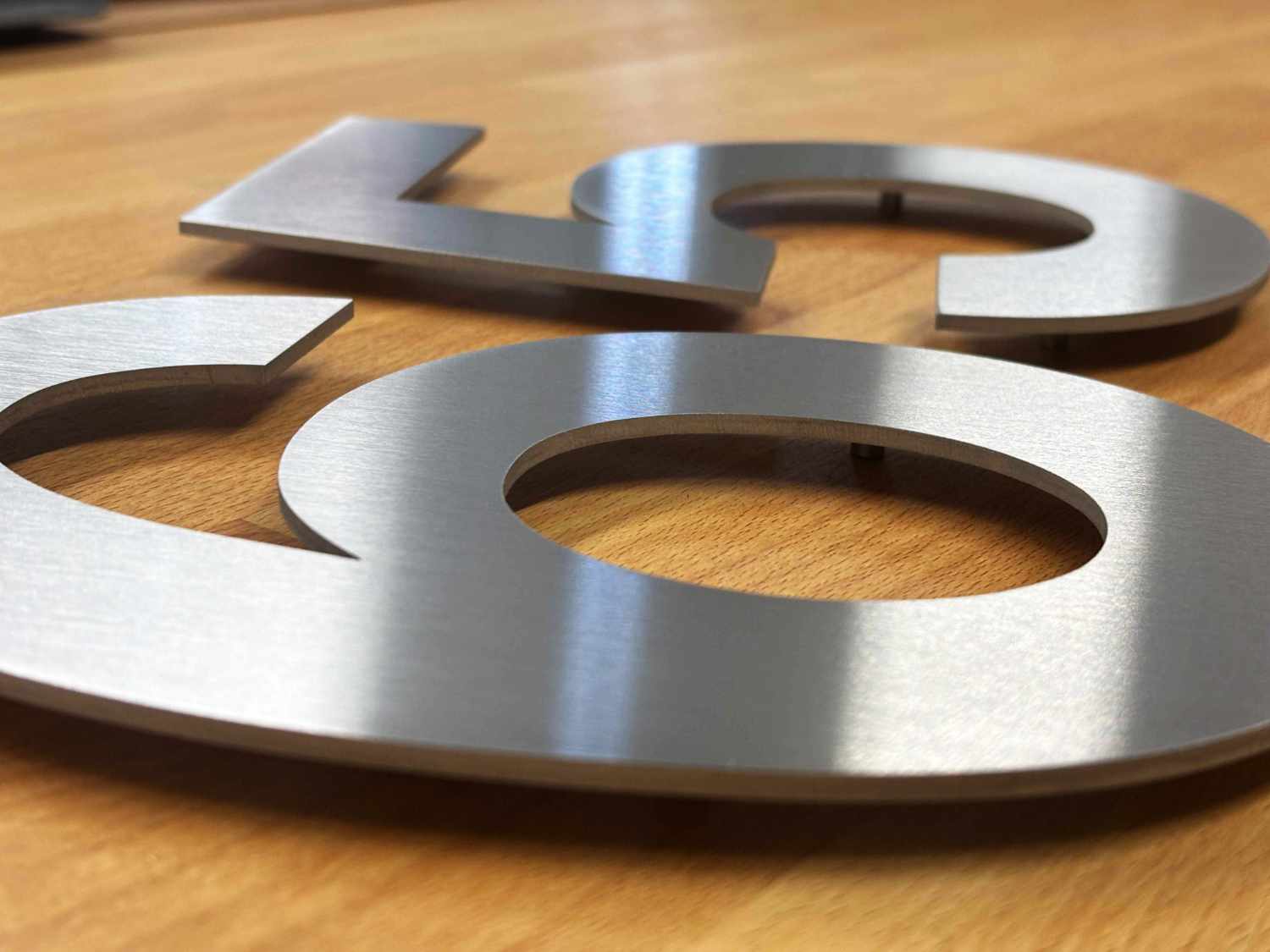 Setzen Sie die Hausnummer mit den Gewindestiften in die gefüllten Bohrlöcher ein (bündig oder verwenden Sie Abstandhalter) - Hausnummer fixieren, bis der Kleber vollständig ausgehärtet ist