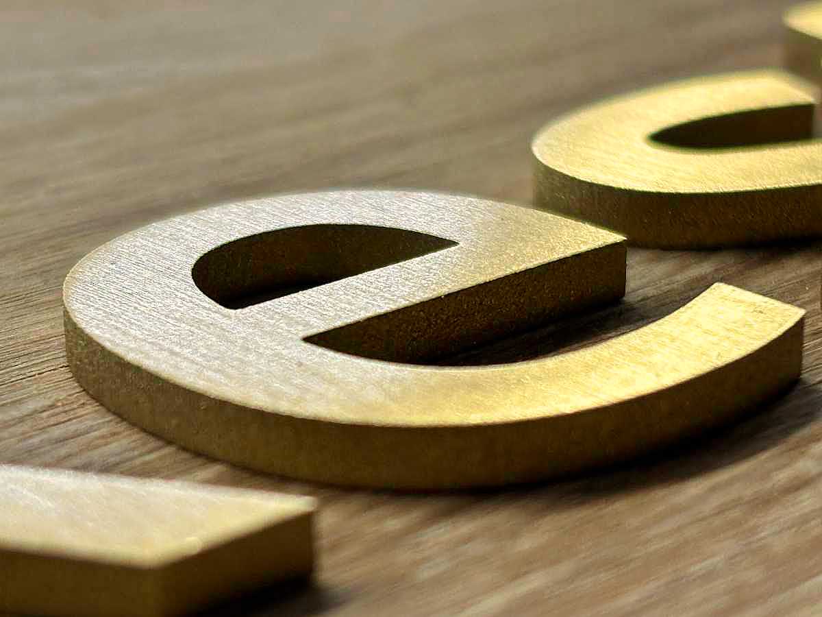 Montage – selbstklebende Messingschriftzüge mit Montageschablone