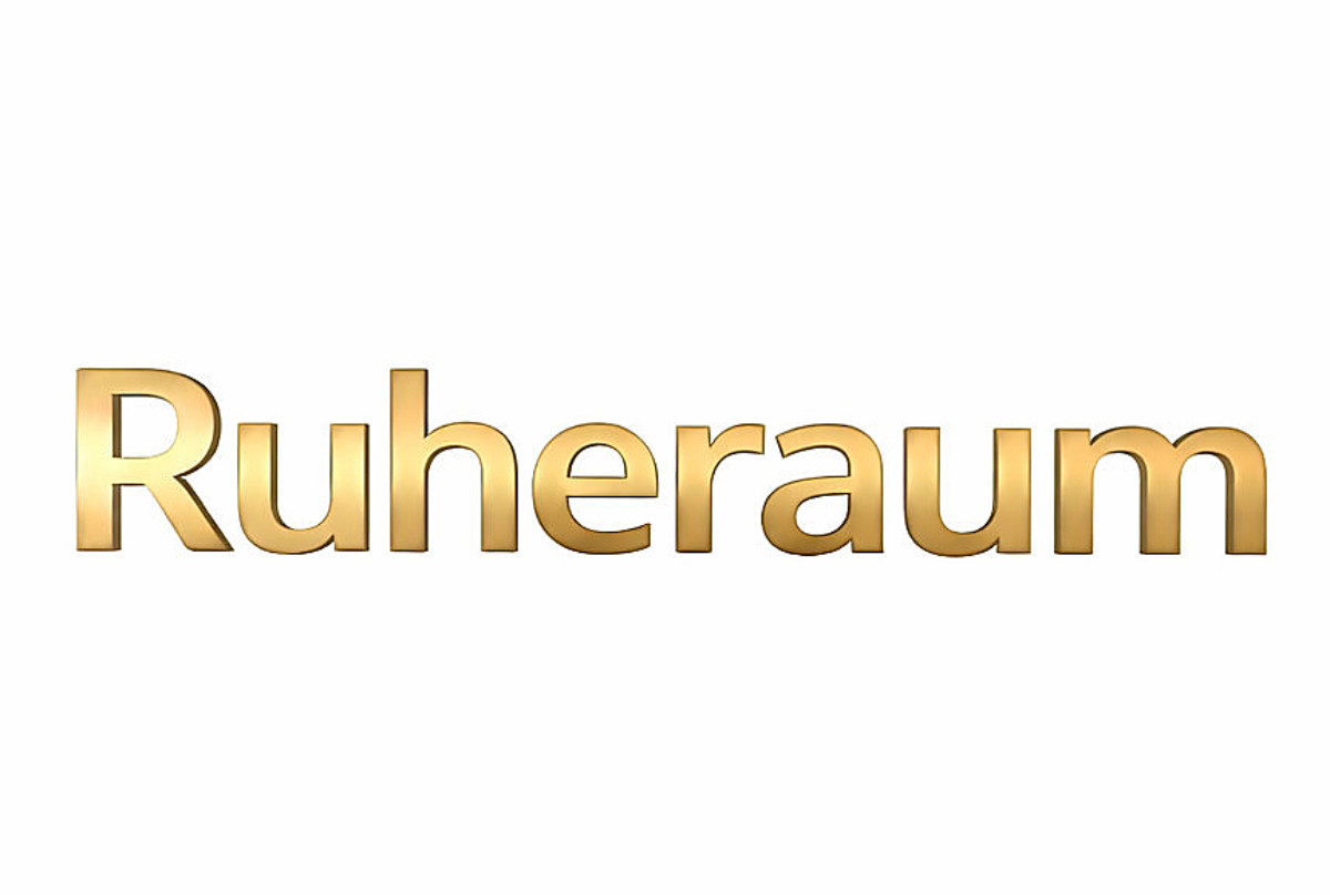 Mobile Preview: Messingschriftzug | 40 mm | 3 mm | "Ruheraum" | selbstklebend für Hotels und Spa-Bereiche