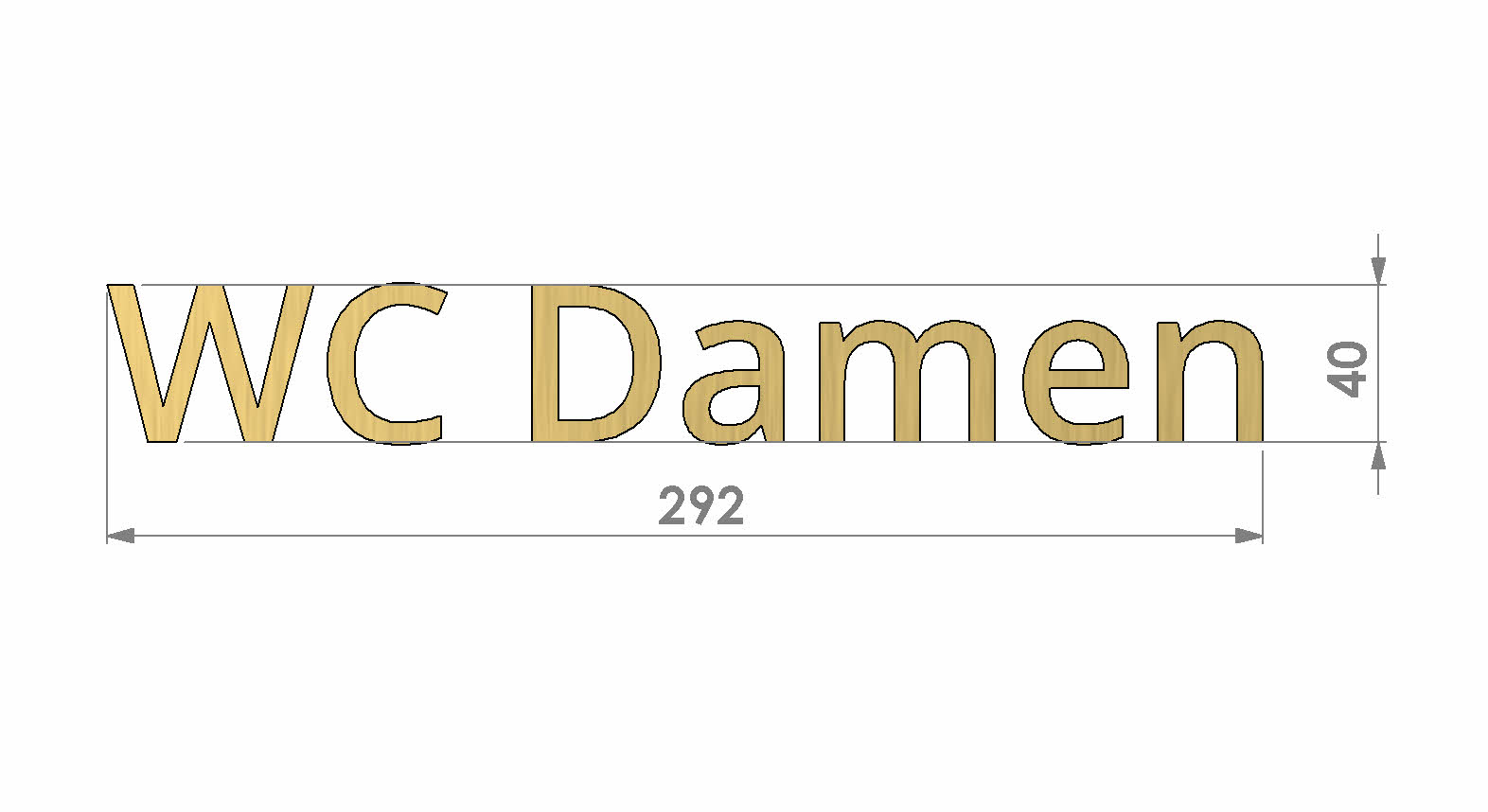 3D Goldbuchstaben WC Frauen bemasst