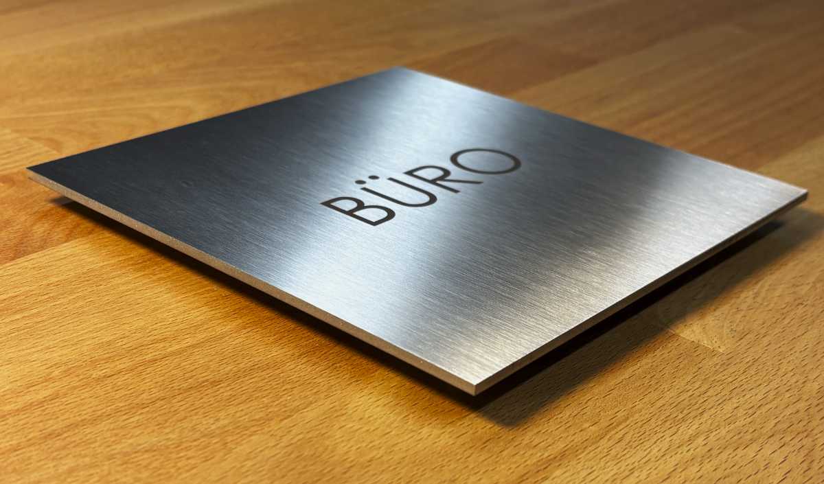 dem Bohren, ob Schablone und Türschild exakt zusammenpassen. Nur auf sauberen, trockenen