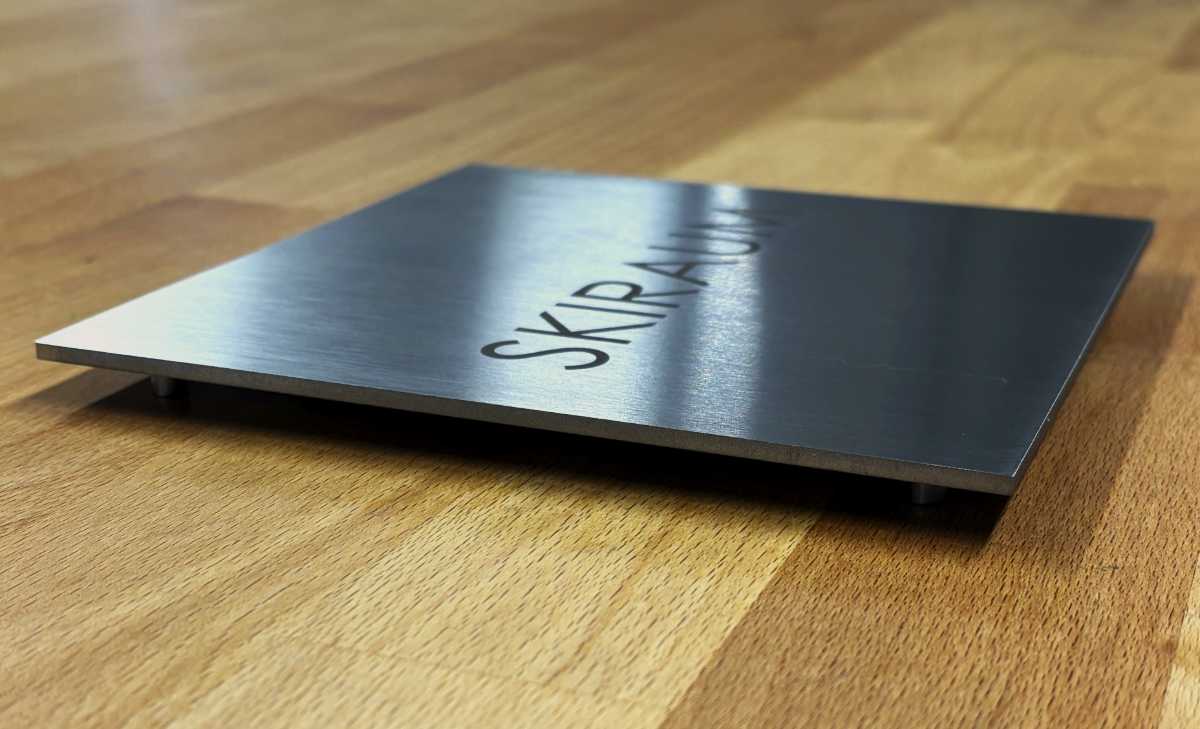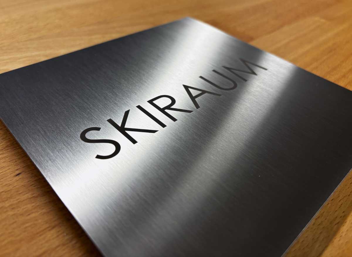 3. Vorbereitung des Türschildes: Schrauben Sie die Gewindestifte in das Türschild und