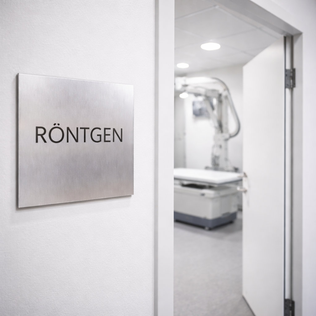 Türschild aus Edelstahl für Praxen, Pflege und Ordinationen
