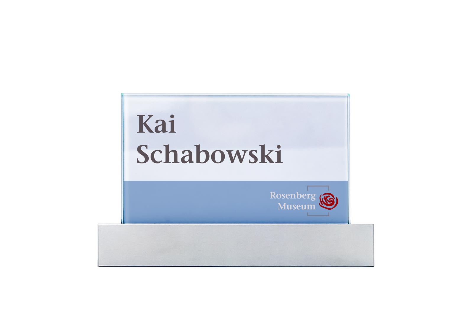 Durch die Glasabdeckungen bleibt die Beschriftung hygienisch und unterstreicht den wertigen Anspruch der Einrichtung. Der solide Fuß gewährt einen sicheren Stand.