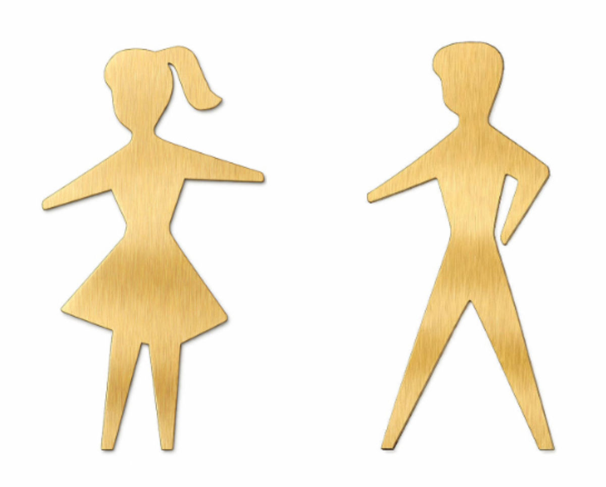 Dieses hochwertige WC Piktogramm Set aus Messing (Damen & Herren) vereint stilvolles Design mit langlebiger Qualität. Die Formgebung orientiert sich an klassischen Piktogrammen der 50er- und 60er-Jahre und sorgt für eine elegante, zeitlose Beschilderung Ihrer Sanitärbereiche.